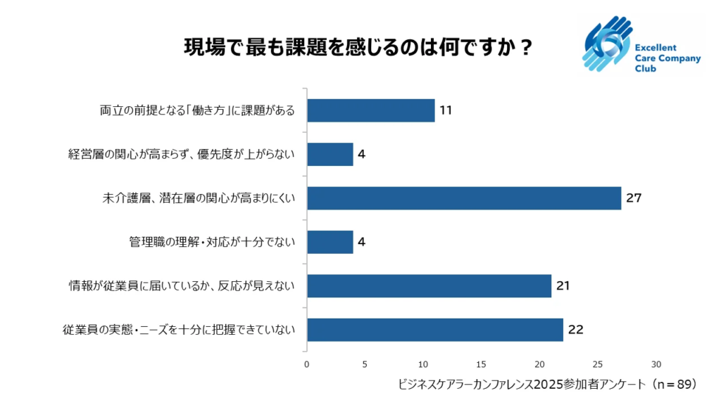最も多く挙げられたのは「未介護層・潜在層の関心が高まりにくい」